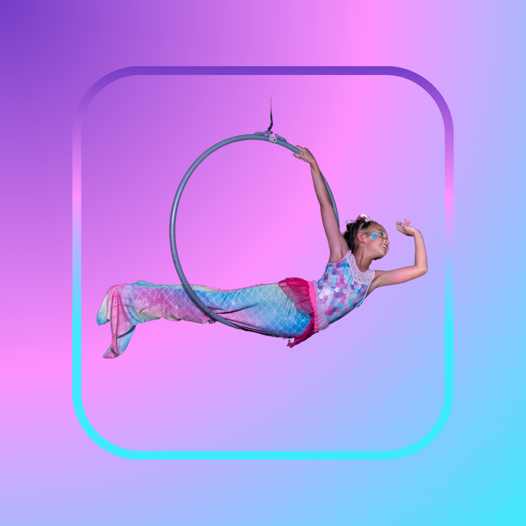 Also known as aerial hoop is for the theatrical, artistic competitors. Flow, expression, musicality, flexibility, strength, dance and entertainment value are the key elements to your routine. Props are allowed and encouraged