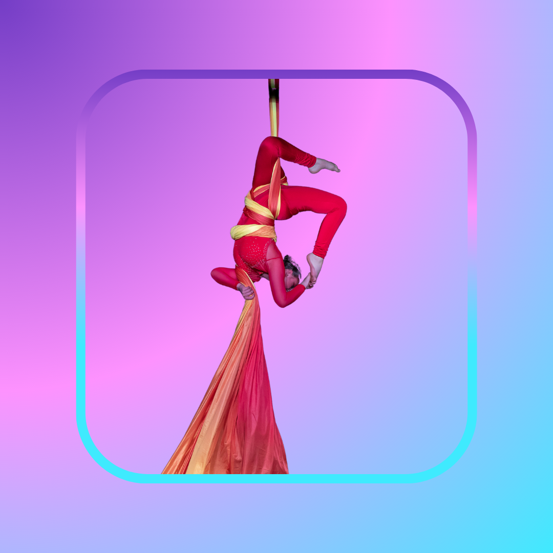Performers are required to climb, wrap, suspend, drop, swing, spiral their bodies, and fly through the air using the fabric. Creating striking poses and figures by manipulating the silks with their hands & feet. Strength, power, flexibility, courage, stamina, and grace are required to execute their routine while keeping in character throughout.